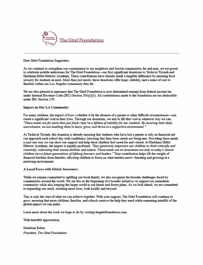 This initiative not only provided nourishment but also embodied the values Gitel held dear—giving back, fostering unity, and uplifting our neighbors in Los Angeles.